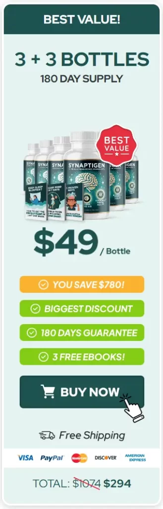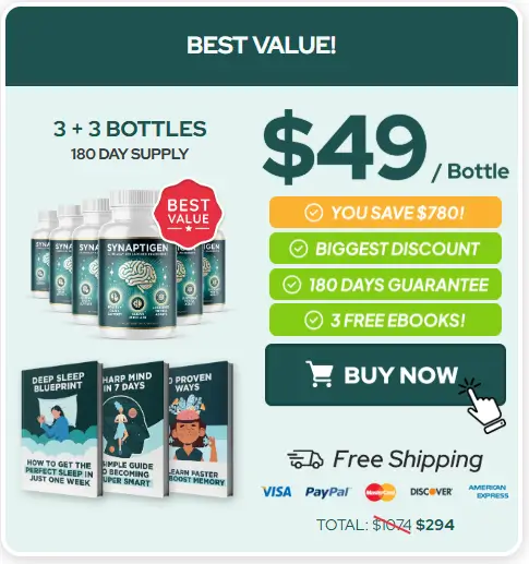 At this moment you can order Synaptigen supplement for 82% OFF + FREE Shipping. This is a Limited-Time Offer and it won’t be available for long.